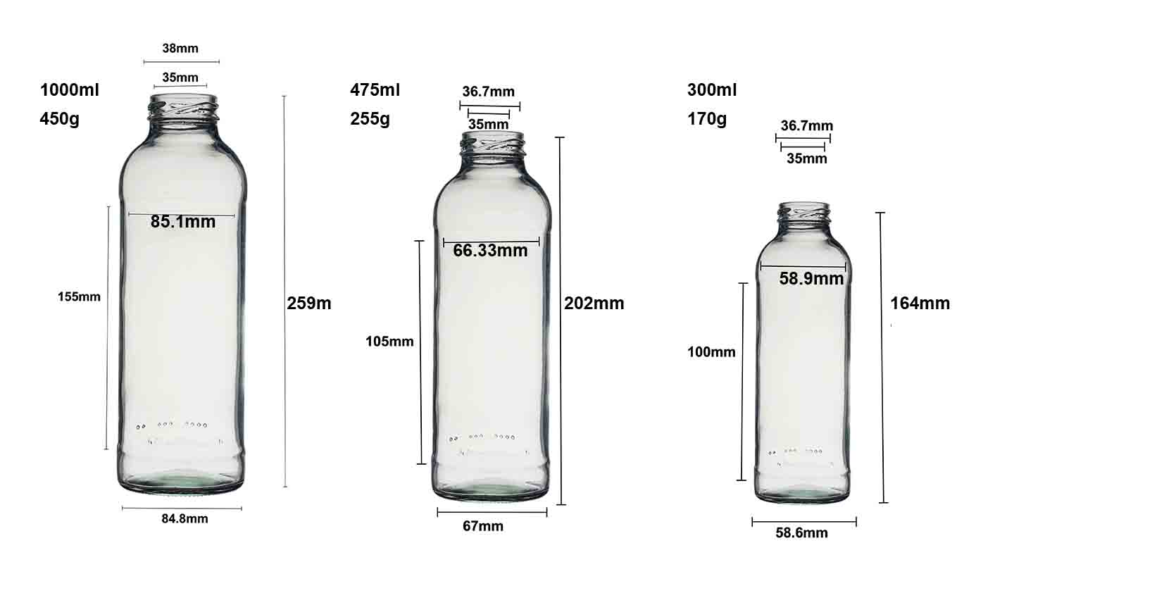 1000毫升/475毫升/300毫升透明玻璃果汁瓶